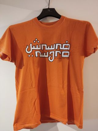 Camiseta naranja, veneno negro, las mil y una noches. Camiseta fruit of de loom talla 9-11 140cm. 49 cm de ancho, 59cm de largo