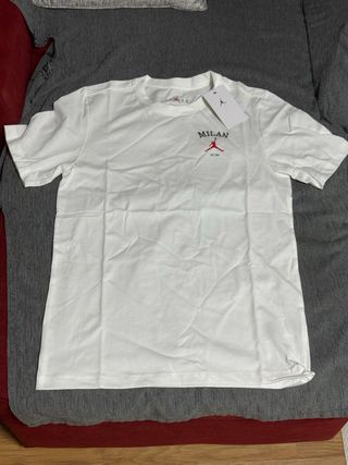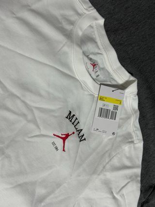 Preciosa camiseta de la marca Jordan, nueva a estrenar. Luce el nombre de Milán y el logo de Jordan en un elegante diseño. - Talla: S - Estampado: 'Milán' y logo Jumpman. - Tejido: Algodón