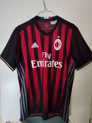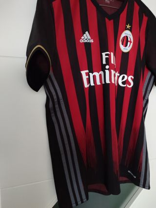 Preciosa camiseta del AC Milán, edición especial Aniversario. Es una pieza original Adidas, en excelentes condiciones. Se compró en Milán en la tienda oficial. Su único defecto es que en las letras de adelante unas esquinas se han levantado, no es casi nada. - Talla M - Diseño conmemorativo del aniversario del club. - Detalles en dorado en las mangas.