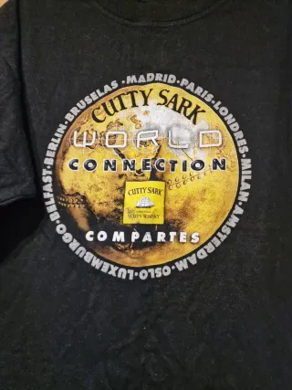 Camiseta negra con diseño gráfico de Cutty Sark. - Estampado World Connection con ciudades como Berlín, Bruselas, Madrid, París, Londres, Milán, Ámsterdam, Oslo y Luxemburgo. - Cuello redondo y manga corta.