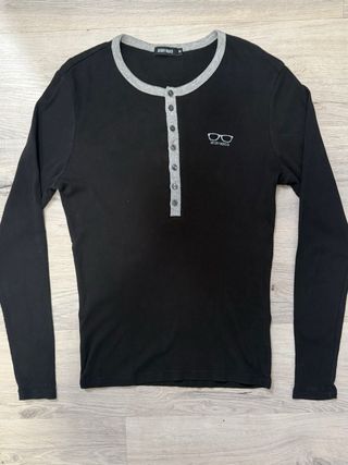 Camiseta de manga larga Antony Morato en color negro, diseño minimalista con detalle/logo discreto en el pecho. Corte entallado/regular ideal para look casual o más arreglado con chaqueta. Tejido elástico y cómodo, perfecta para entretiempo o invierno. En muy buen estado.