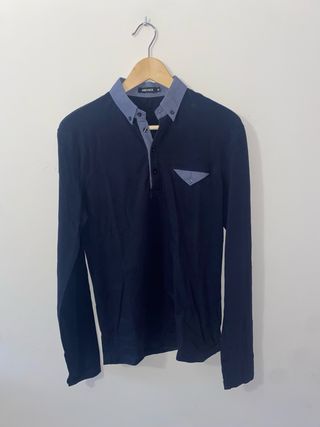 Polo de manga larga con cuello camisero y detalles en contraste. - Cuello con botones. - Bolsillo de parche en el pecho. - Puños ajustados.