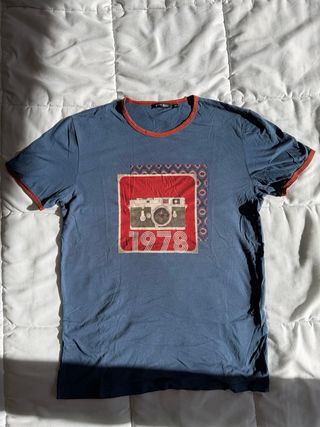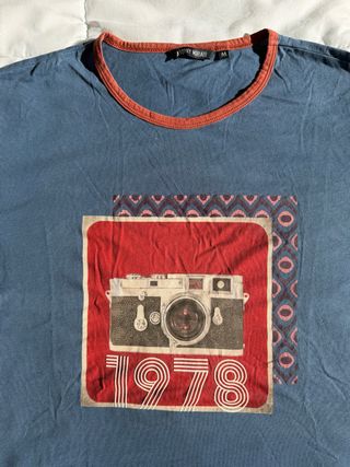 Camiseta de manga corta con estampado de cámara y el año 1978. - Cuello redondo con ribete. - Diseño frontal con cámara vintage y detalles gráficos. - Tejido suave al tacto 100% algodon