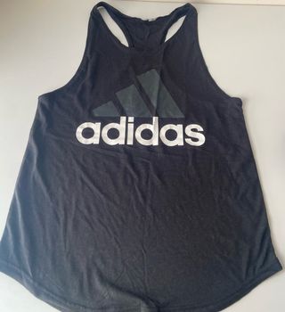 Camiseta deportiva de tirantes con el logo de Adidas. - Diseño de tirantes. - Logo de Adidas en contraste.