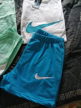 Conjunto deportivo de mujer. No. Es marca original - Camiseta de manga corta. - Cintura elástica con logo. - Diseño moderno.