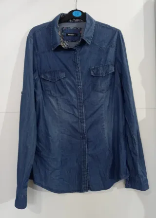 Camisa Kelrevec vaquera de manga larga para mujer. - Cuello camisero. - Cierre de botones. - Dos bolsillos en el pecho. - Puños abotonados. Muy bien cuidado. Talla M-38 Pecho 45 cm Largo 70 cm