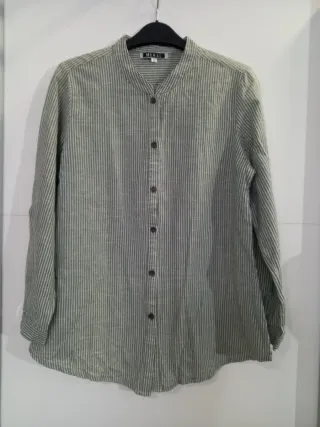 Camisa Meral rayas para mujer. Algodón y Lino Muy bien cuidado. - Diseño de cuello mao. - Cierre de botones. - Manga larga. Talla XL-42 Pecho 50 cm×2 Largo 70 cm