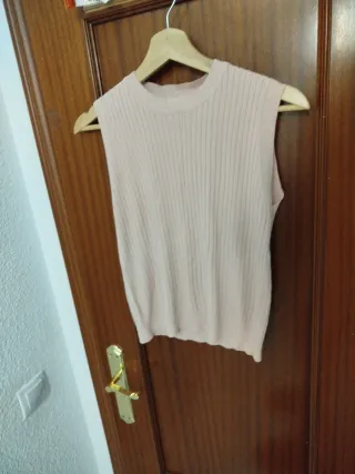 Camiseta de punto sin mangas en tono rosa. Tiene un cuello redondo y un diseño acanalado. - Tejido de punto acanalado. - Diseño sin mangas. - Cuello redondo.