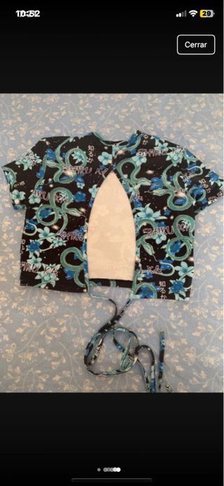 Usada en una ocasión. Se vende porque me queda grande. La parte de abajo es desigual y uno de los lados es de gasa.