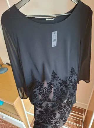 Camiseta larga encaje negra Talla M