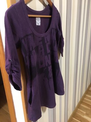 Camiseta larga estampada gris y morada