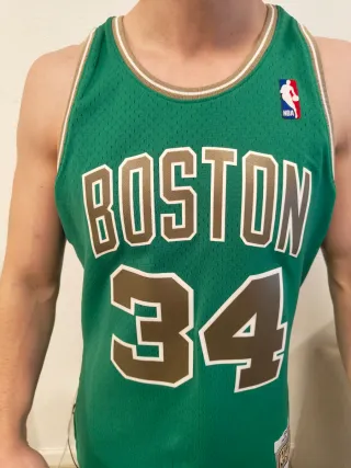 Camiseta de baloncesto de Paul Pierce con los Boston Celtics, edición especial St. Patrick's Day de la temporada 2007-08. - Diseño clásico de los Celtics. - Número 34 en la espalda y frontal. - Logo de la NBA bordado.