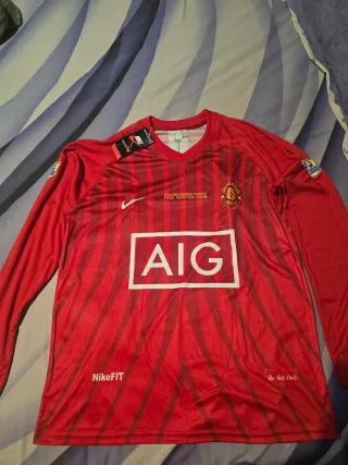 Vendo MÍTICA camiseta de manga larga del Manchester United de CR7 de la final de Champions 2008 SUBLIMADA, con parches costurados de escudo, marca y Champions - Nueva con etiqueta - Manga larga. - Tiene el nombre y número SUBLIMADOS de CRISTIANO RONALDO y el número 7 - Talla L