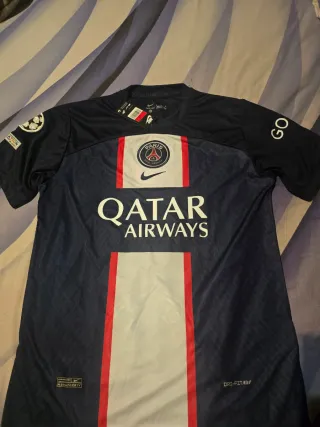 Camiseta de fútbol del Paris Saint-Germain (PSG) con el número 30 de Messi. Serigrafiado estampado - Diseño oficial de Nike. - Color azul con detalles blancos y rojos. - Logo de Qatar Airways en el frontal. - Escudo del club en el pecho. - Talla L Preciosa negociable