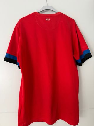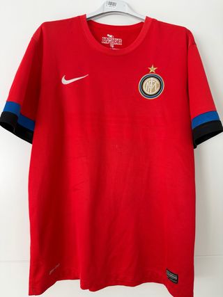 Camiseta de fútbol del Inter de Milán. - Diseño clásico en color rojo. - Logo de Nike bordado. - Escudo del equipo. - Mangas con detalles en azul y negro. Camiseta gris adidas -Transpirable -Comoda -Gris con rayas gris oscuro