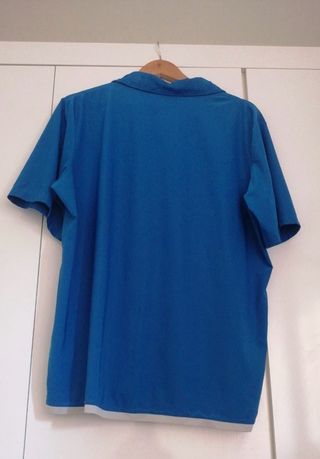 Vendo camiseta deportiva Nike. Es de color azul y gris, con detalles en las mangas. Está en buen estado. - Tejido transpirable. - Diseño deportivo.