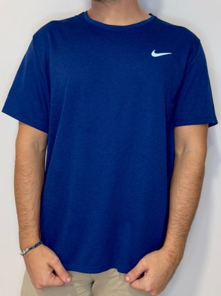 Camiseta deportiva Nike en color azul. - Tejido ligero y transpirable. - Logo de Nike en el pecho. - Detalle 'Dri-FIT' en la manga.