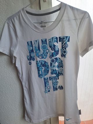 Camiseta Nike blanca talla "S", está manchada con unos puntitos negros como se aprecia en las fotos,por lo demás todo bien, las dos por 5€.