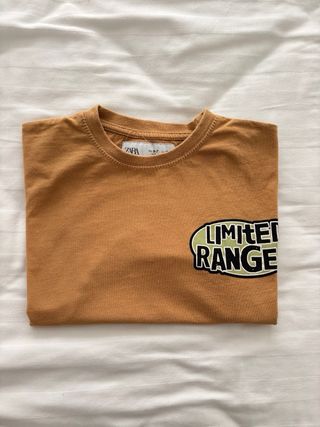 Camiseta de manga corta para niño con un diseño llamativo. - Estampado ovalado con texto LIMITED RANGE en la parte delantera. - Etiqueta negra en el lateral con detalles de la marca.