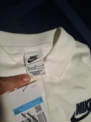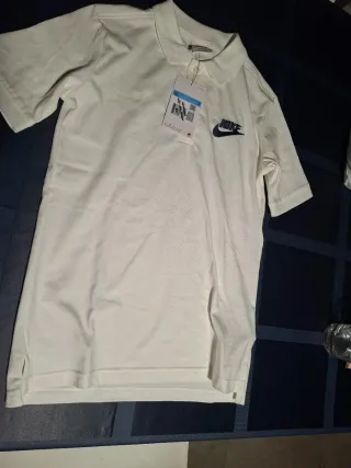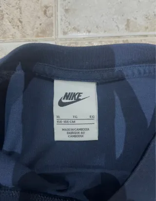 Camiseta de manga corta con el logo de Nike. - Color azul marino. - Talla XS para adulto o XL para niño.