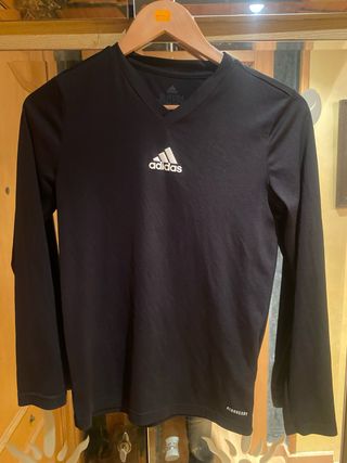 Camiseta deportiva de manga larga para niño. - Logo de Adidas en blanco en el pecho. - Tecnología AEROREADY para mayor transpirabilidad.