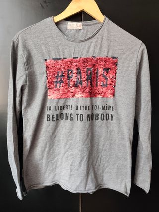 Camiseta de manga larga para niño. - Diseño con lentejuelas reversibles en color rojo y negro - Estampado frontal con texto #PARIS y LA LIBERTÉ D'ÊTRE TOI-MÊME BELONG TO NOBODY. - Cuello redondo.