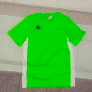 Camiseta deportiva de manga corta con detalles laterales blancos. - Logo de Kappa en el pecho.