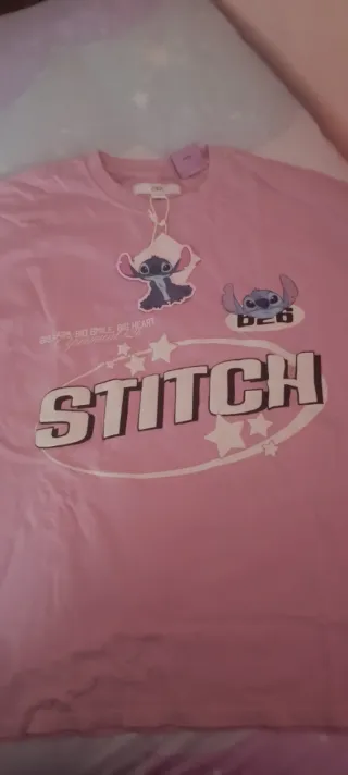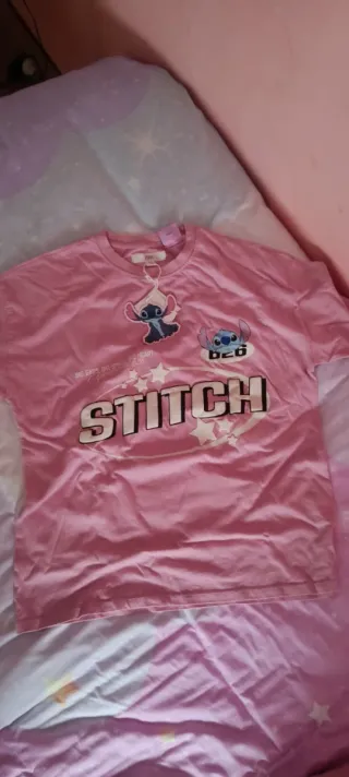 Camiseta de manga corta con estampado de Stitch. Niña talla 12 - Diseño con varios dibujos de Stitch. - Detalle de texto STITCH en grande.