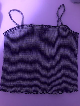 Top de rayas con tirantes finos y escote elástico. - Diseño fruncido. - Acabado con volantes en el borde. El diseño está pensado para niñas de 11-12 años, sin embargo podéis pillarlo de todas formas🫶🏻