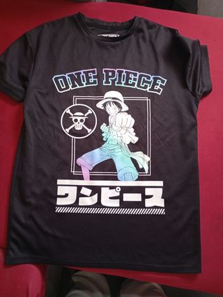 Camiseta de manga corta de One Piece para niño. Está en buen estado. - Es de color negro. - Tiene un diseño de Luffy. - Talla 12Y/152. - Fabricada en China.