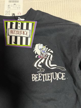 Camiseta de manga larga con diseño de Beetlejuice. - Estampado frontal de Beetlejuice. - Mangas a rayas blancas y negras. - Cuello redondo. - talla 9-10 años/140cm - estampado trasero - sin estrenar con la etiqueta