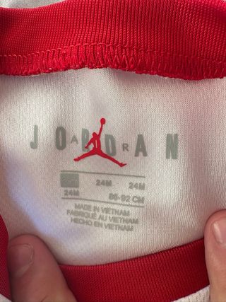 Camiseta de baloncesto estilo Jordan para los más pequeños. Con el icónico número 23. - Diseño sin mangas. - Ribete rojo en cuello y mangas. - Logo de Jordan en la parte inferior.