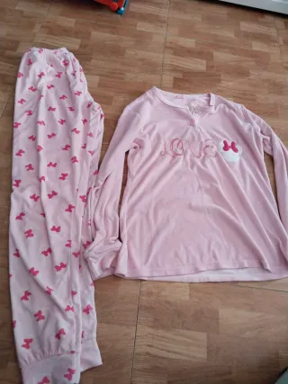 Conjunto de pijama para niña. - Pantalón largo con estampado de lazos. - Camiseta de manga larga con detalle LOVE y Minnie. - Tejido suave y cómodo.