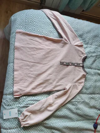 Camiseta de manga larga con un diseño delicado. Para niña 10 años - Cuello redondo con detalle de volantes. - Cierre de botones en la parte delantera. - Puños elásticos en las mangas.