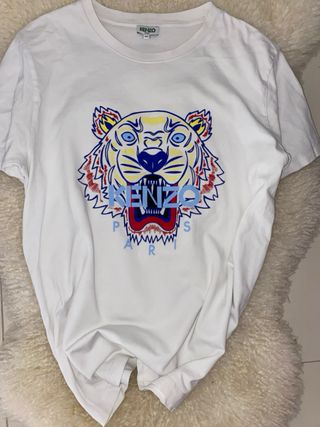 Se vende camiseta Kenzo Paris original, con el icono del tigre multicolor en la parte frontal. La prenda se encuentra en muy buen estado, bien cuidada y sin desperfectos relevantes. • Talla: M niño • Marca: Kenzo Paris • Diseño: tigre multicolor bordado • Autenticidad: 100% original Camiseta de marca premium, ideal para uso diario o para ocasiones especiales, con un diseño llamativo y de alta calidad. Para cualquier duda o información adicional, no dude en contactar.