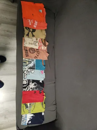 Lote de once camisetas de manga corta para niño. Variedad de colores y estampados. Se aceptan ofertas por solo algunas camisetas.