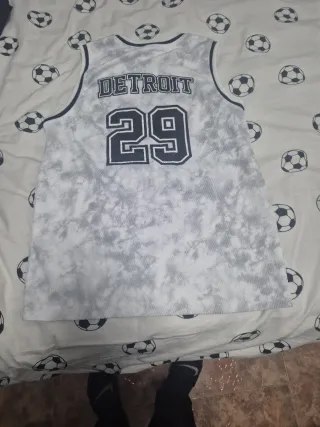 Camiseta de baloncesto con diseño moderno. - Estampado jaspeado en tonos grises y blancos. - Número 29 en grande en la parte frontal. - Nombre DETROIT en la parte superior. - Detalle de etiqueta deportiva en la parte inferior derecha. -Talla niño/a 12 años