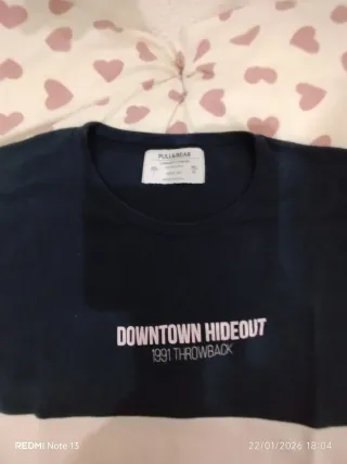 Camiseta de manga corta de la marca Pull&Bear. En mi perfil más ropa de chica, mujer, juguetes... 📐Largo 28,5 cm Ancho 33 cm Largo manga 12,5 cm 🚚 Envio 24-48 h HAGO ENVIOS!!!