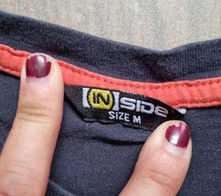 Lote de camisetas de chico de manga corta. Una roja de la marca INSIDE. Otra de color azul marino con detalle de letras en el pecho, de la marca INSIDE. Otra de manga corta en color marrón, de la marca PULL AND BEAR. En perfecto estado. Talla M. (8 €). También se venden por separado.