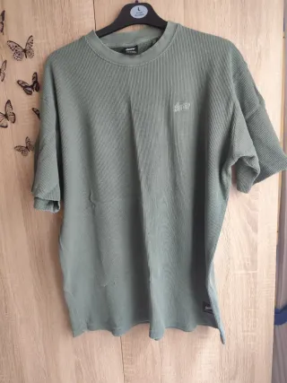 Camiseta de chico de la marca Pull&Bear. - Color verde oliva. - Talla L (equivalente a 40 ). - Cuello redondo y manga corta. Pone q es una L, pero equivalent a una M.