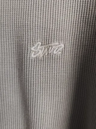Jersey de manga larga con cuello redondo, simula una camiseta blanca - Tejido texturizado. - no es ancho Linea recta más bien pegada.wn muy buen estado. Verde caqui