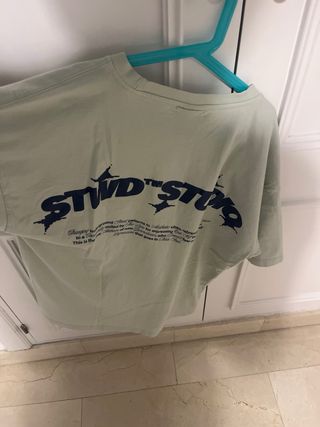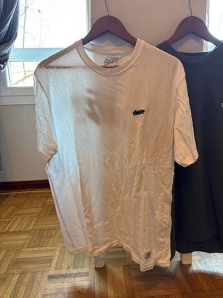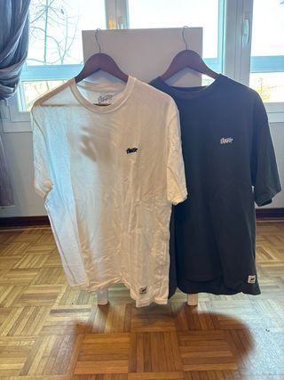 Pack de dos camisetas de Pull and Bear con el logo SWD. - Camiseta blanca. - Camiseta verde oliva. (15 euros el par, 8 por separado)