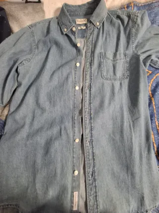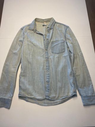 Camisa denim de hombre de Pull&Bear. Talla: S. Corte: Regular Fit. Características: Manga larga, bolsillo delantero y botones blancos. Condición: Muy buena. Perfecta para llevar abierta con camiseta debajo o cerrada. Envío en 24/48h.