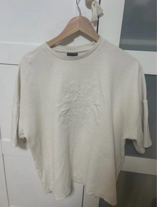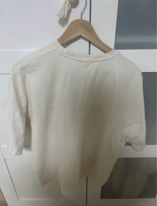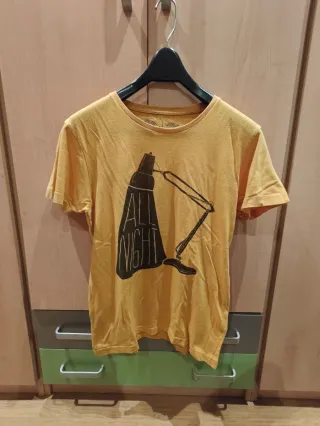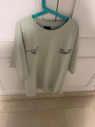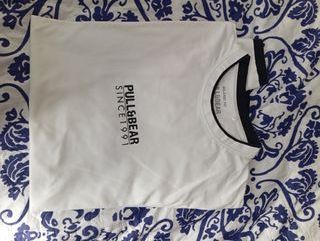 Camiseta de manga corta de la marca Pull&Bear. - Diseño con estampado gráfico en la parte delantera. - Cuello redondo. - Tejido suave y cómodo. Se vende porque me está pequeña. Casi sin uso. Es una S oversize, para M va perfecta y para L también se puede usar.