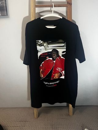 Camiseta negra con estampado de Notorious B.I.G. y la icónica frase I got a story to tell. - Estampado frontal. - Manga corta. - Cuello redondo.