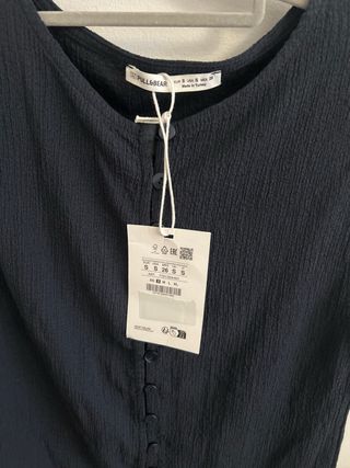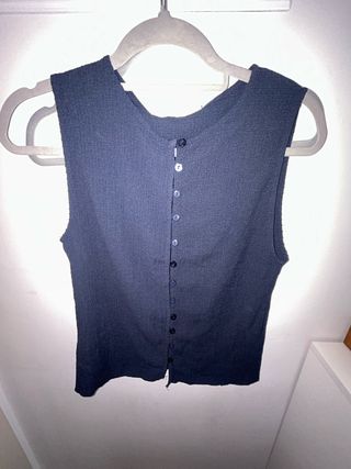 Precioso top de Pull and Bear en color azul. Tiene un diseño con botones en la parte delantera. - Tejido texturizado. - Sin mangas. - Cuello redondo.