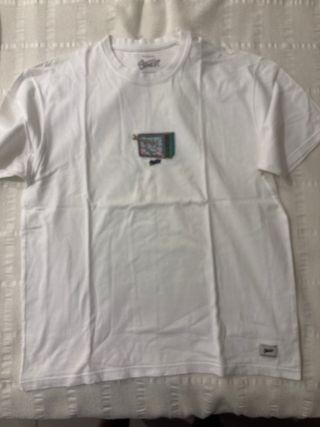 Camiseta manga corta, color blaco y estampado delantero. Talla M 📏 Medida hombros 47cm, axilas 54cm y largo 69cm. Está usada y en buen estado‼️ 🔴 Más artículos en mi perfil. 📤 Envío rápido. Ref. A2.26