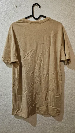 Camiseta de cuello redondo manga corta de color beige. Talla XS es talla grande - de largo 68 cm y de ancho 52 cm Composición: 49% poliéster - 49% algodón - 2% elastano bien cuidado.