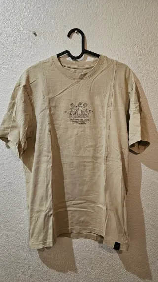 Camiseta de manga corta de color beige. - Cuello redondo. - Etiqueta de la marca en el interior. - Detalle de etiqueta en la parte inferior.