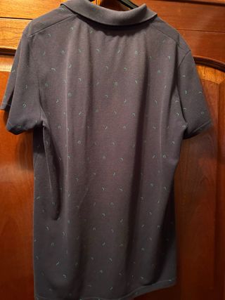 Polo azul marino sin apenas usos y en perfecto estado, sin ningun deterioro. Cuenta con unos simbolos color verde como diseño, para mas información no dudes en preguntarme, estoy abierto a negociar!